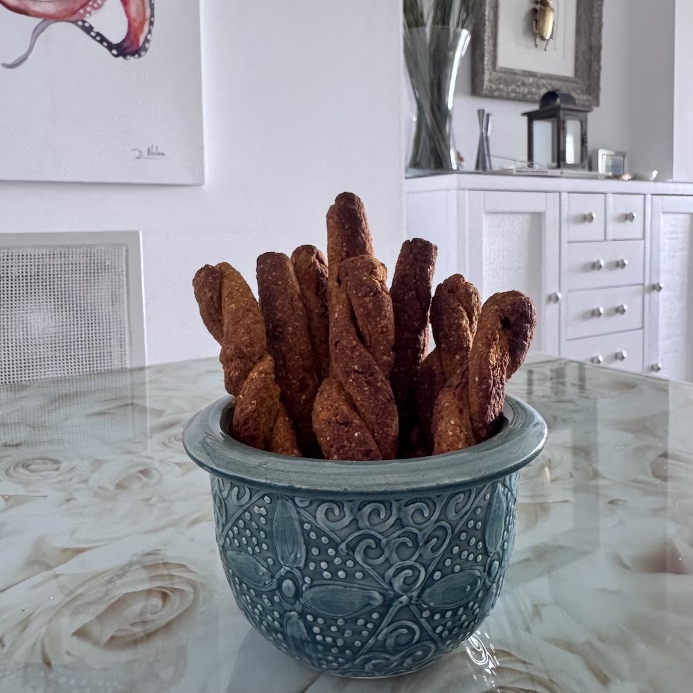1. Shape the dough into thick sticks (about 1.5–2 cm in diameter and 12–15 cm long) and place them on a baking tray lined with baking paper.