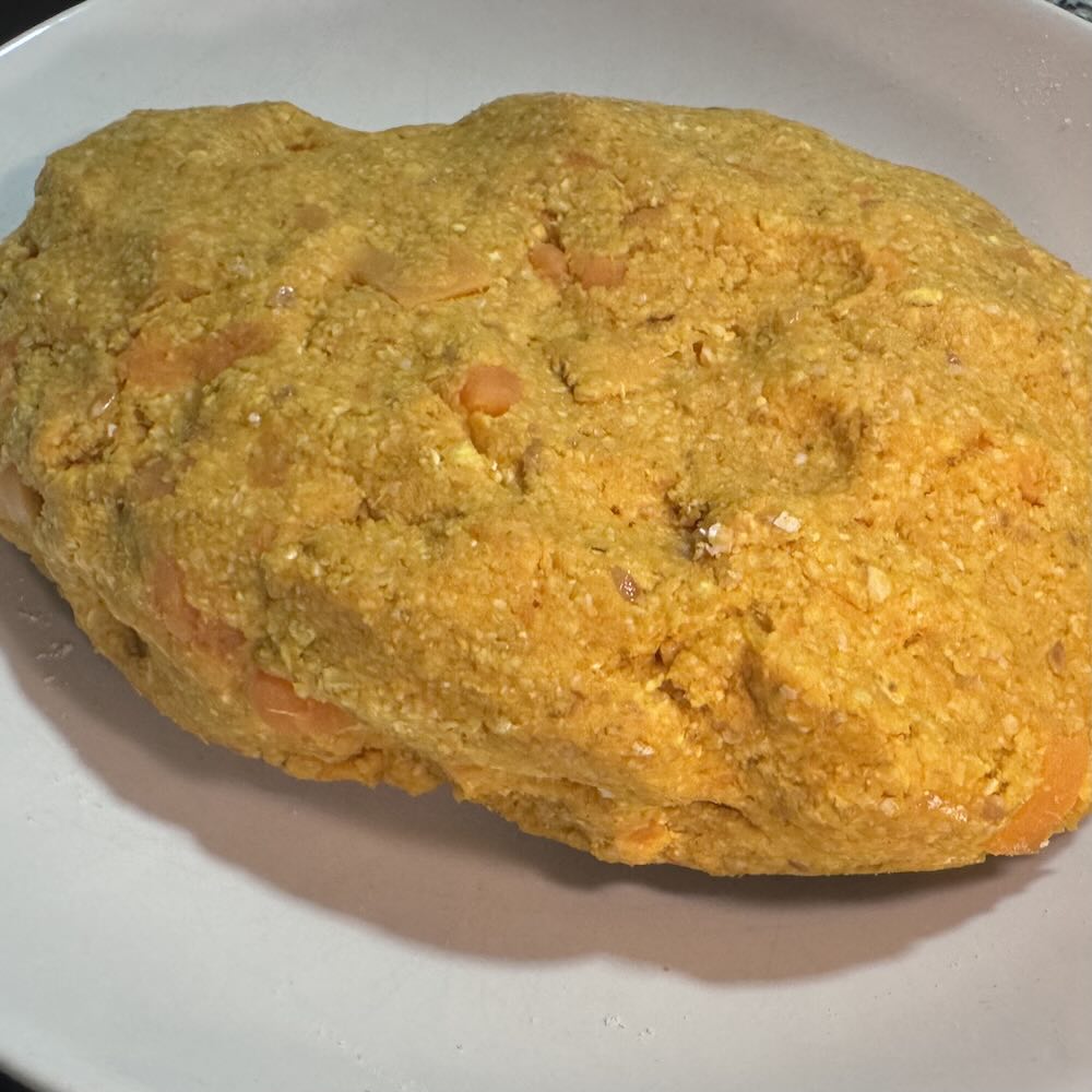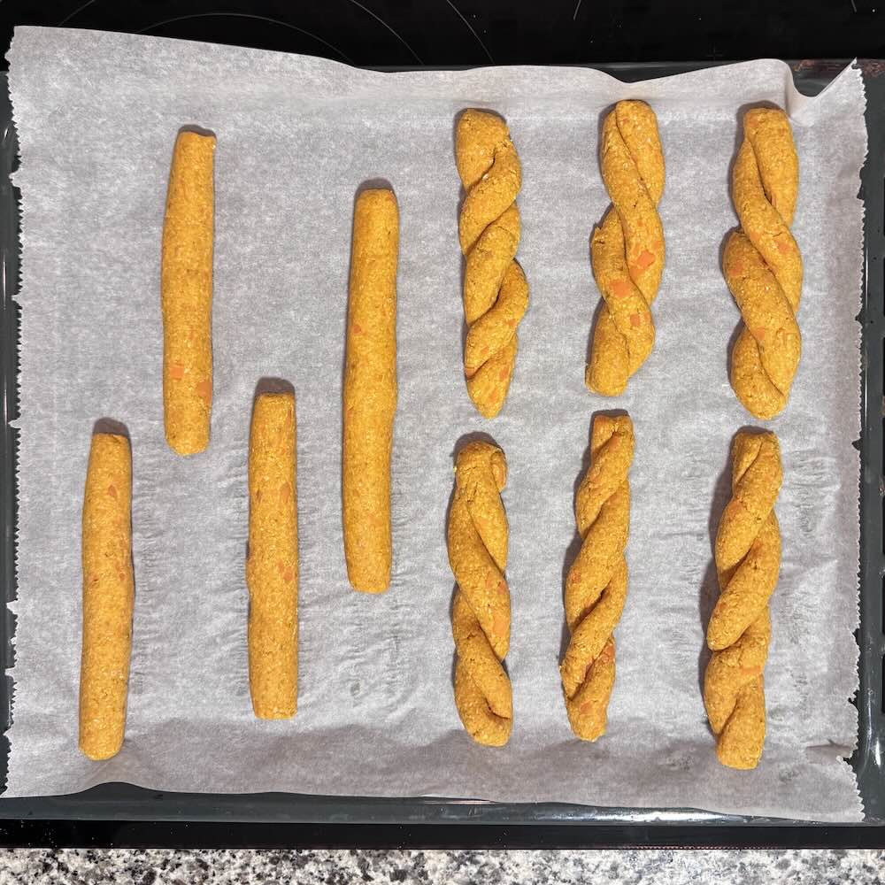Sweet potato, oats and chickpea flour come together into a simple, well-tolerated dough that turns into a firm, long-lasting chew with a bit of time in the oven and air – no additives, no complications.
